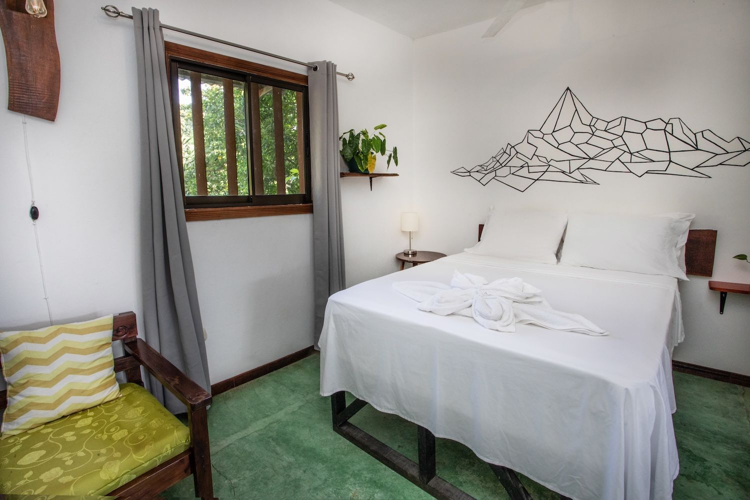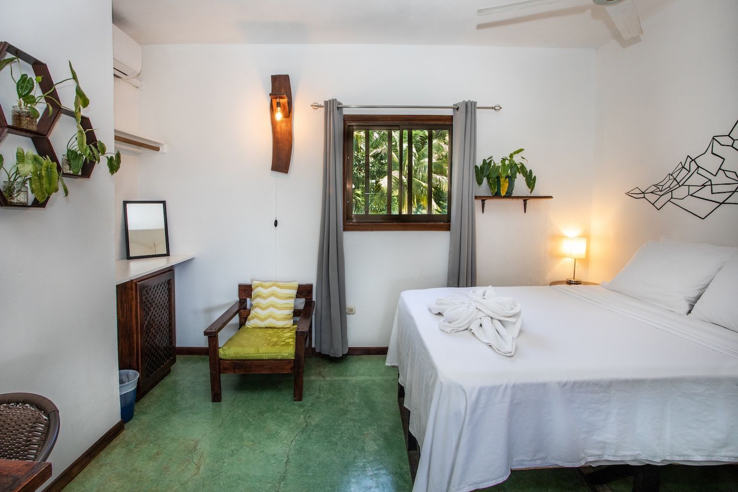 Medium private room with double bed and ceiling fan. Shared bathroom with one or two participants.